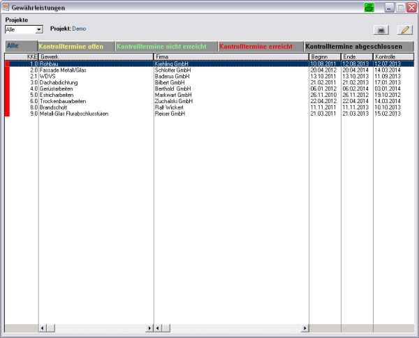 Verwaltung der Gewährleistungstermine der Firmen (ACC)